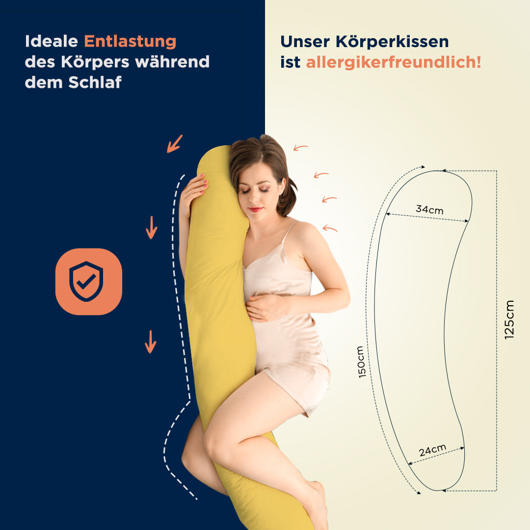 Wenn es um die Qualität des Schlafens geht, ist es besonders wichtig, das richtige Kissen zu wählen, um die Wirbelsäule, die Knie und den Hüft- und Beckenbereich zu schonen. Dabei sollte man sehr wählerisch sein und auf qualitativ hochwertige Produkte zurückgreifen. Das Thomsen Körperkissen bietet alles, was der menschliche Körper benötigt, um einen äußerst guten und entspannten Schlaf zu finden. Das Körperkissen eignet sich besonders für Seitenschläfer.